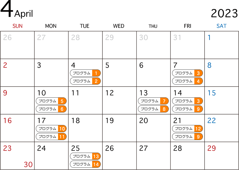 | 開催日 | 時間 | カテゴリ | プログラム内容 |